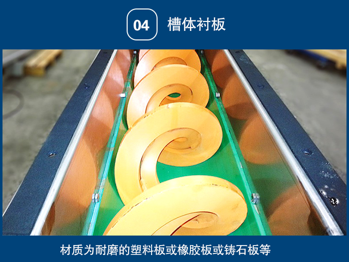 4)槽体衬板:材质为耐磨的塑料板或橡胶板或铸石板等。进、出料口:有方形和圆形两种,一般进、出料口形式由用户决定。
