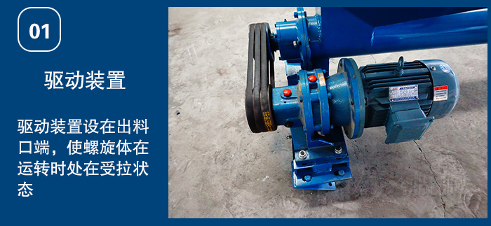 1)驱动装置:采用摆线针轮轮减速机或轴装式硬齿面齿轮减速机,设计时应尽可能将驱动装置设在出料口端,使螺旋体在运转时处在受拉状态。头部装配有推力轴承,可承受输送物料时产生的轴向力。