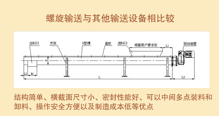(3)螺旋输送与其他输送设备相比较,具有结构简单、横截面尺寸小、密封性能好、可以中间多点装料和卸料、操作安全方便以及制造成本低等优点。它的缺点是机件磨损较严重、输送量较低、消耗功率大以及物料在运输过程易被破碎。