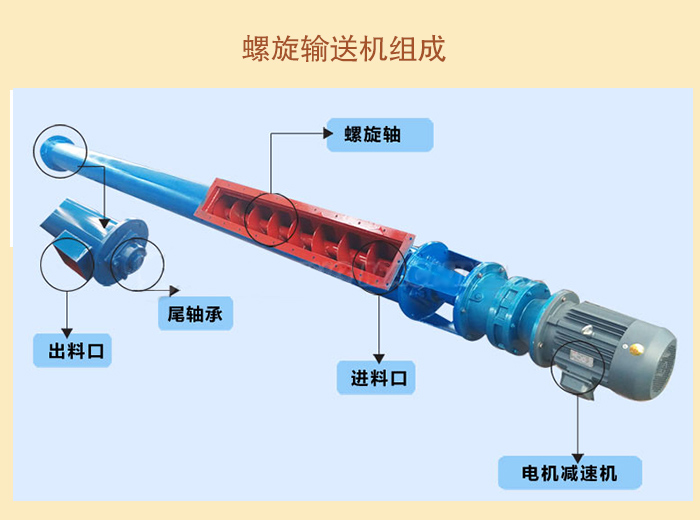 螺旋机本体由头部轴承、尾部轴承、悬挂轴承、螺旋、机壳、盖板及底座等组成。