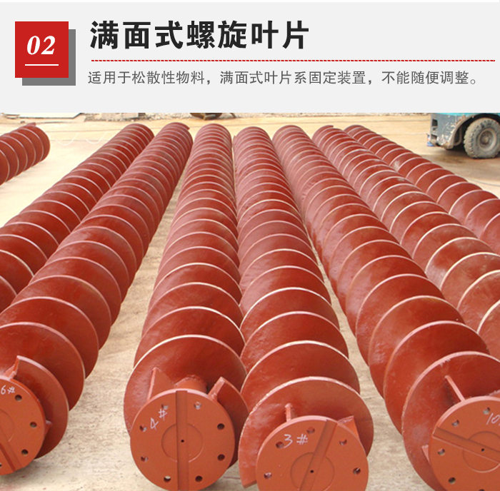 满面式螺旋叶片/实体螺旋叶片 满面式适用于松散性物料,满面式叶片系固定装置,不能随便调整。
