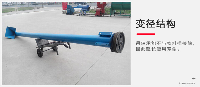 该输送机是采用变径结构,吊轴承能不与物料相接触,因此它的寿命长。