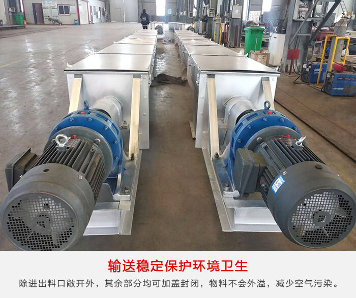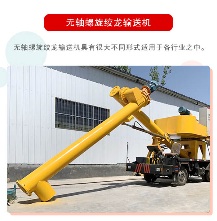 无轴螺旋绞龙输送机其也是有管式螺旋输送输送机组成,所以其除进出料口敞开外,其余部分均可加盖封闭,物料不会外溢,减少空气污染。