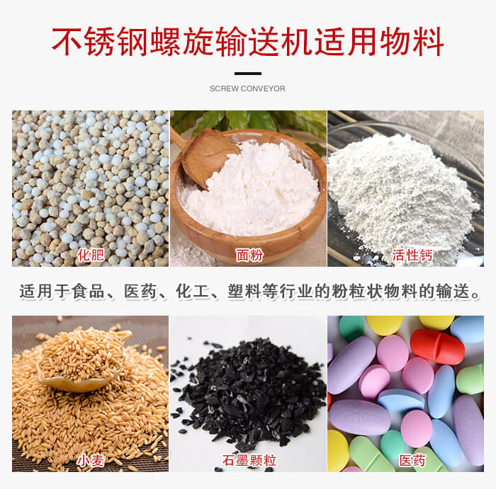 注:垂直式不锈钢午夜精品久久久久久久适宜垂直或大倾角输送粉状、粒状、非黏性的物料,如:粮食、饲料、化工原料、水泥等,不适宜输送输送块状、粘性及流动性强的物料,如:粉煤灰。