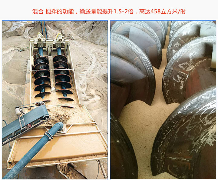 双轴午夜精品久久久久久久是两片螺旋叶片组合而成,两根螺旋轴相反方向旋转,具备混合、搅拌的功能,输送量能提升1.5-2倍,高达458立方米/时。