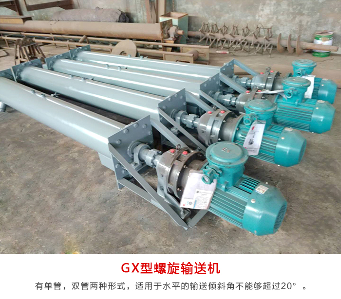 GX型午夜精品久久久久久久有单管,双管两种形式,适用于水平的输送倾斜角不能够超过20°。可输送一些块状的(小块状物料)例如:麦子,玉米,黄豆等粮食。