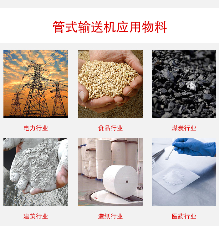 广泛应用于各行业,如建材、化工、电力、冶金、煤矿炭、粮食等行业,适用于水平或倾斜输送粉状、粒状和小块状物料,如水泥、污泥、生活垃圾、煤渣、粮食等,物料温度一般不超过200℃。