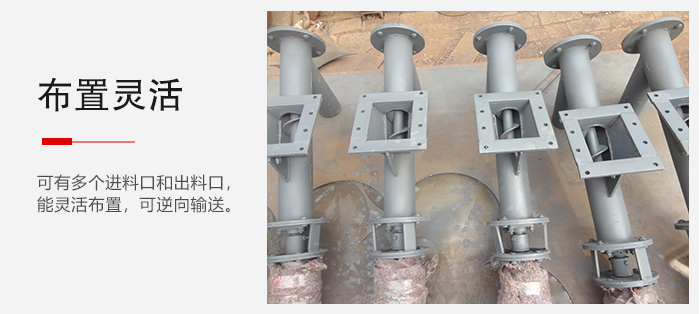 3、可有多个进料口和出料口,能灵活布置,可逆向输送,因此可以同时向两个方向输送物料;