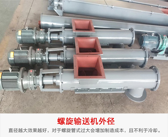 直径越大效果越好,但是对于开式管式输送机,螺旋外径过大会增加制造成本,且不利于冷却。此外,外径值没有必要一定取500的整数倍。