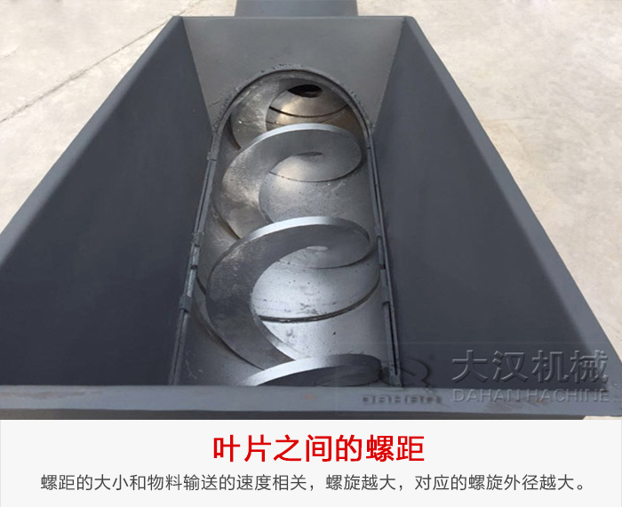 当螺旋轴转动时,由于物料的重力及其与槽体壁所产生的摩擦力,使物料只能在叶片的推送下沿着输送机的槽底向前移动,其情况好像不能旋转的螺母沿着旋转的螺杆作平移运动一样。