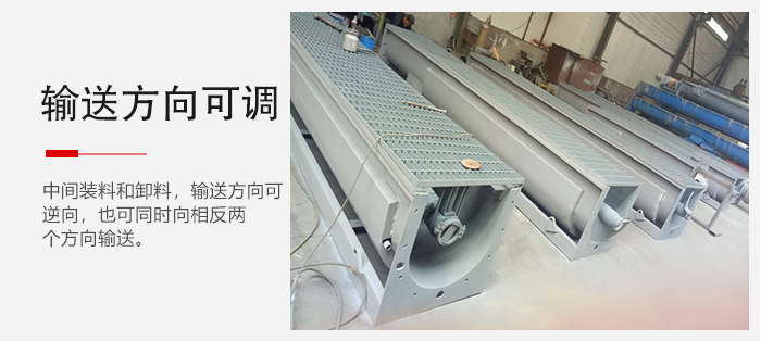 2、中间装料和卸料,输送方向可逆向,也可同时向相反两个方向输送;
