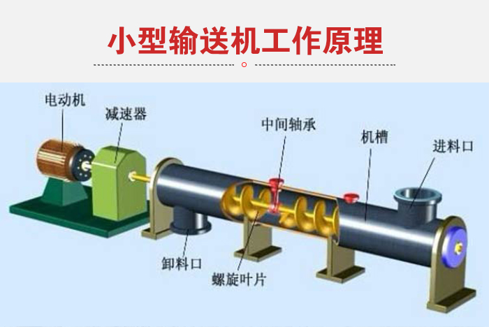 小型旋输送机主要有传动装置、进料口、螺旋轴、输送管、出料口等部件组成。水平午夜精品久久久久久久是利用旋转的螺旋将被输送的物料沿固定的机壳内推移而进行输送工作,头部及尾部轴承移至壳体外,吊轴承采用滑动轴承设有防尘密封装置,轴瓦一般采用粉末冶金,输送水泥采用毛毡轴瓦,吊轴和螺旋轴采用滑块连接。