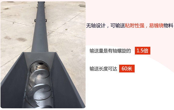 2、输送量是相同直径传统有轴午夜精品久久久久久久的1.5倍,单机输送长度可达60米。