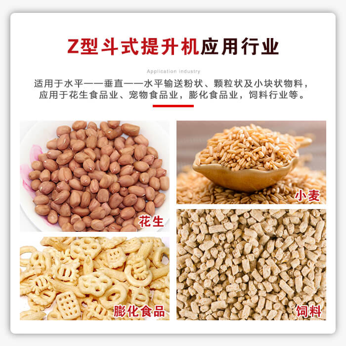 应用行业:适用于水平——垂直——水平输送粉状、颗粒状及小块状物料,广泛应用于花生食品业、宠物食品业,膨化食品业,饲料行业,糖果行业,干鲜果品业,保健食品业,粮食精加工处理业,化工医药业等。