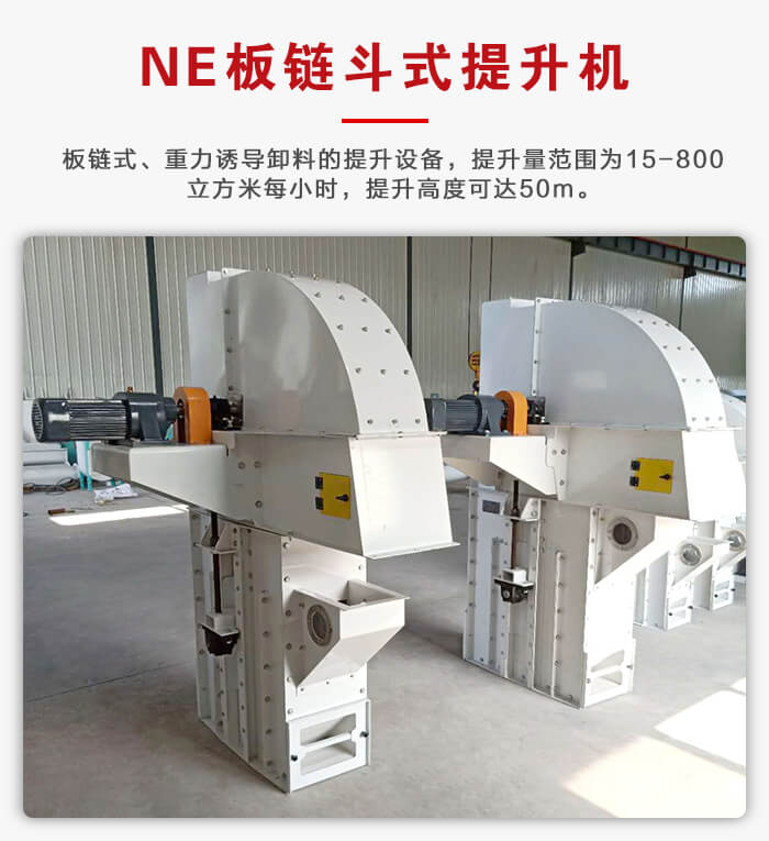 NE板链斗式提升机为板链式、重力诱导卸料的提升设备,该系列提升机具有NE15 ~ NE800多种规格。提升量范围为15 ~ 800m³ /h,提升高度可达50m。